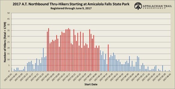However, since this is the most popular time, it can make for a congested trail and very crowded shelters/hostels. The above graph shows that of the 1700 hikers who registered with the Appalachian Trail Conservancy in 2017, more than half started in March. The ATC collects this data voluntarily, so may not be 100% accurate, but it certainly supports the theory. The good news is that I do not anticipate this being a problem for 3 reasons: