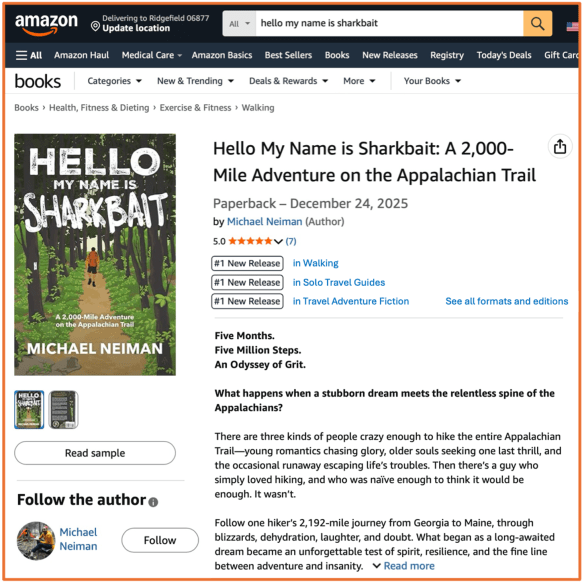 Over the past week, we’ve been the #1 new release in Walking, Solo Travel Guides, and Travel Adventure Fiction! A huge thank you to all the early buyers of Hello My Name is Sharkbait that put me on the best-sellers list so quickly for 3 categories. It’s a joy to see photos of people as they receive their physical copies this week. But can you help do more?