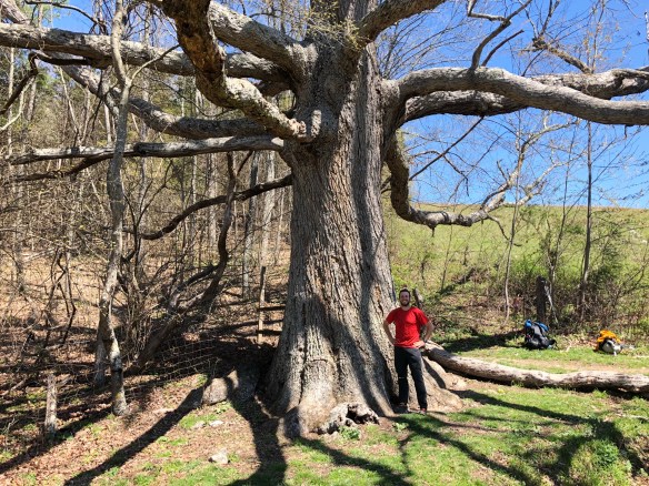 Besides that though, It was a gorgeous day. A full day of blue skies and sun while hiking in the James River Face Wilderness. Many stream crossings and just a couple big elevation changes meant it was a fairly simple day of hiking. One nice view came at Thunder Ridge Overlook, where I snapped the photo above. Even with foot pain, today’s hike was a good one. And it finally emptied out on the massive James River. Not the prettiest of waterways, with its murky brown water, but a big river and big landmark. After crossing the HUGE foot bridge, I was nearly done for the day.